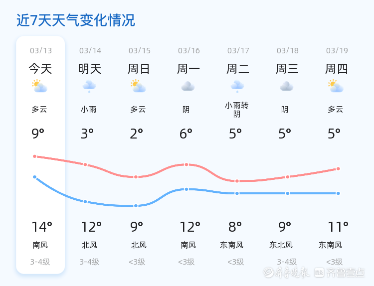 今天是3月13日,星期五,农历正月廿五。菏泽市今日天气以多云为主,气温较为舒适,最高气温14℃,最低气温9℃,当前温度7.1℃。东南风2级,空气湿度86%,PM2.5指数为200,提醒市民注意防护。