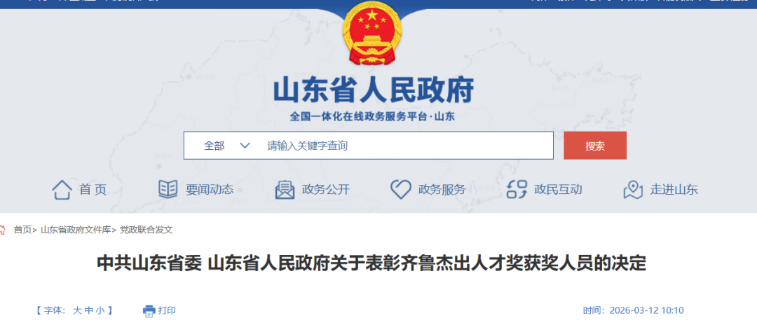 《关于表彰齐鲁杰出人才奖
