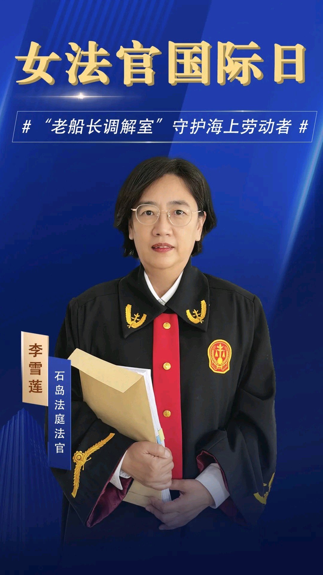 法槌起落之间,周洁以专业与智慧守护着公正航路,以女性特有的细致与坚韧,在复杂涉外案件与航运纠纷中明辨是非;以精湛的法律职业素养,诠释着海事审判的深度与力量;以“如我在诉”的态度,让法律之光照亮蔚蓝疆域的公平与正义。