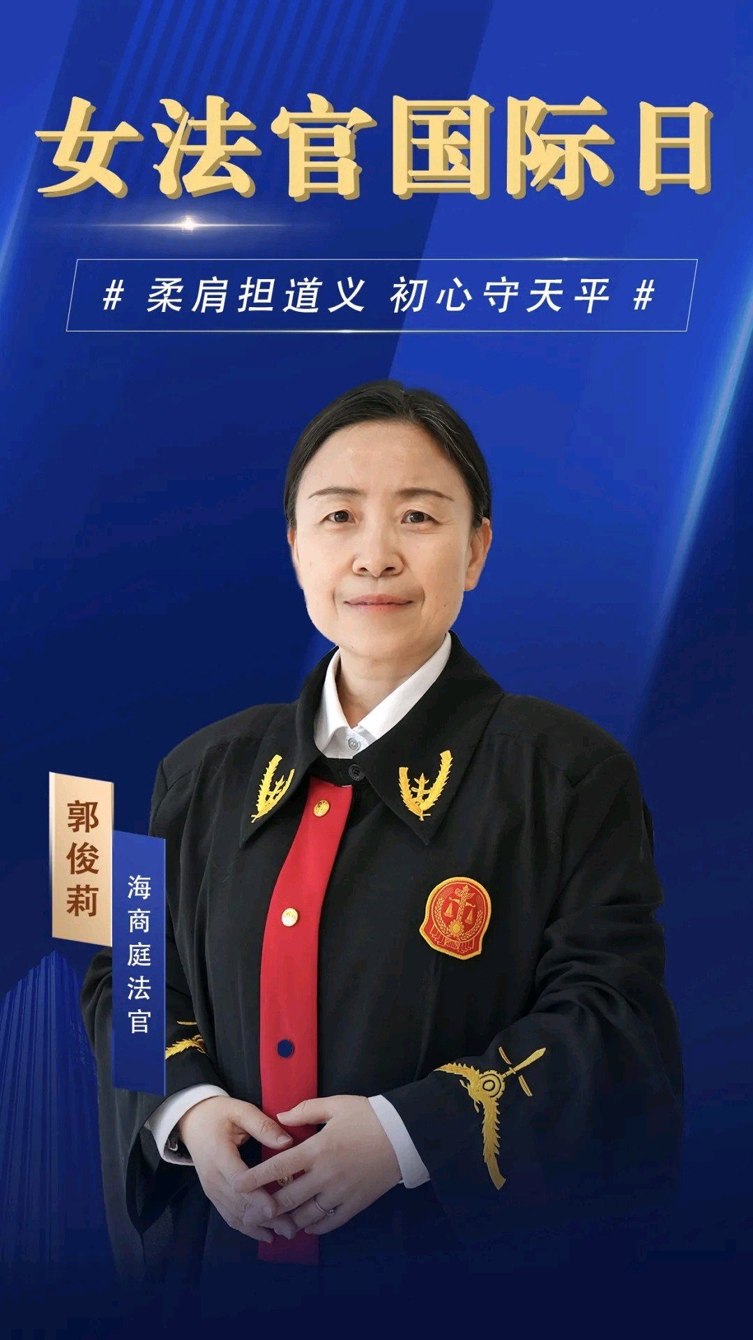 时间赋予女法官不同的光谱却映照出同样坚毅的法官本色70后的她 阅历如锚将风雨沉淀为从容的智慧在错综复杂的国际经纬中定下稳健的基调80后的她 锋芒如剑以新颖的思维破开浪潮用精准的法条回应着新时代航船的笛鸣第五个“女法官国际日”到来之际让我们驻足凝视这两道交织的航迹如何以温柔而坚定的力量守望每一程风雨点亮每一座灯塔既护卫着千帆竞发也珍重着每一朵浪花的诉说