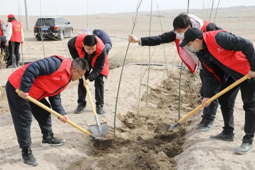 3月12日,济宁援疆指挥部组织全体援疆干部人才,前往英吉沙县萨罕镇治沙点,与广大干部群众携手开展义务植树活动,以实际行动践行生态文明,在戈壁荒漠上增添新绿,用心用情增进鲁疆情谊。