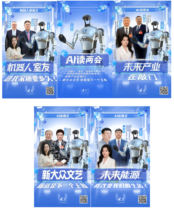 今年全国两会期间,大众新闻推出《AI读两会》系列报道,紧扣政府工作报告所提新词,巧妙引入智能机器人与AI大模型,与代表委员“云对话”。报道对“智能体”“未来产业”“未来能源”“互联网下的新大众文艺”等话题展开讨论,增强用户对政策理解力与情感认同。