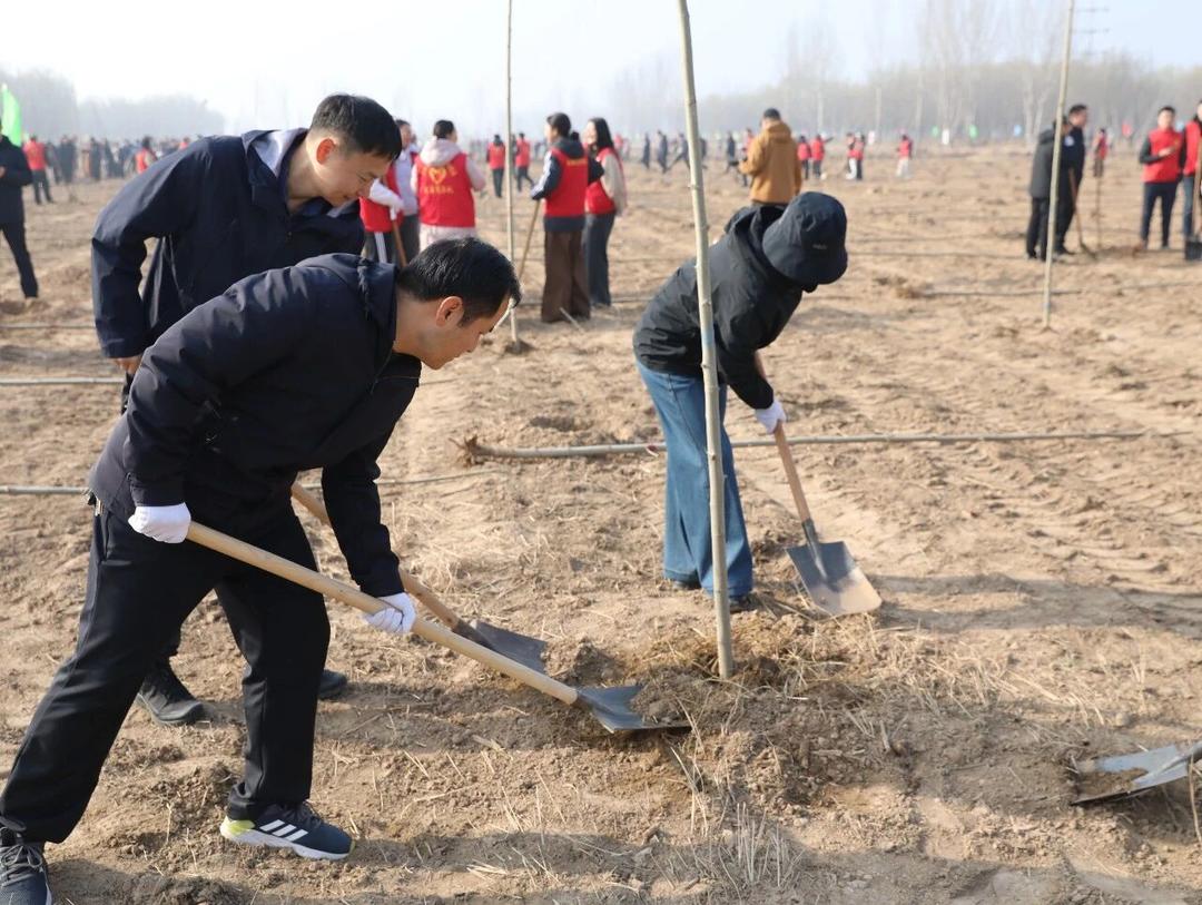 3月12日植树节,利津县组织干部群众齐聚王庄沙区林场,开展“利马扬鞭·津植尽责”义务植树活动,以实际行动为沿黄生态长廊建设再添新绿。