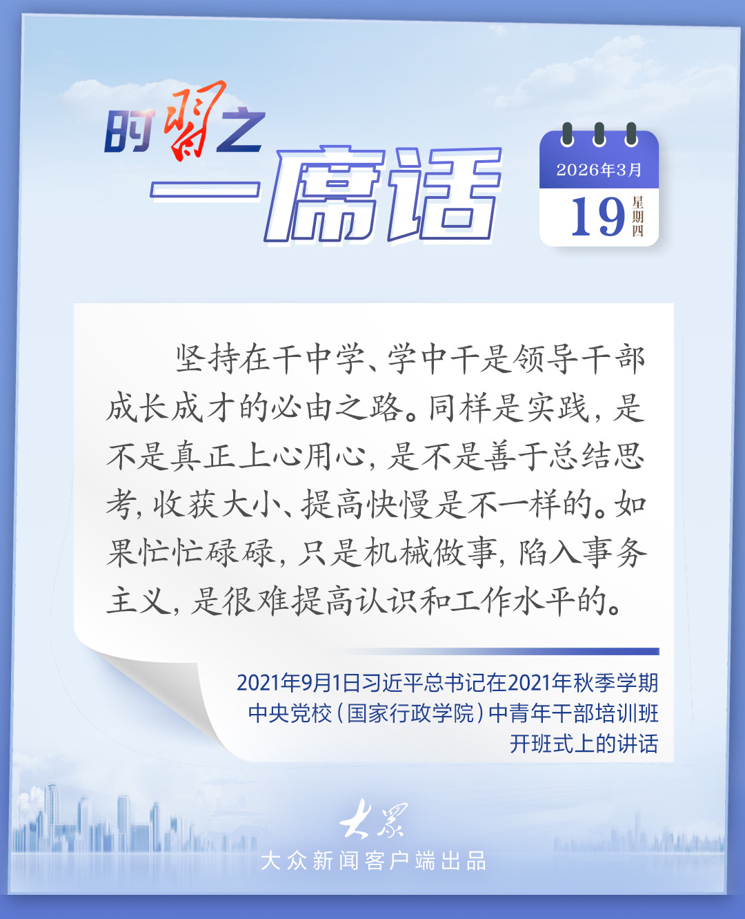 一席话丨坚持在干中学、学中干是领导干部成长成才的必由之路