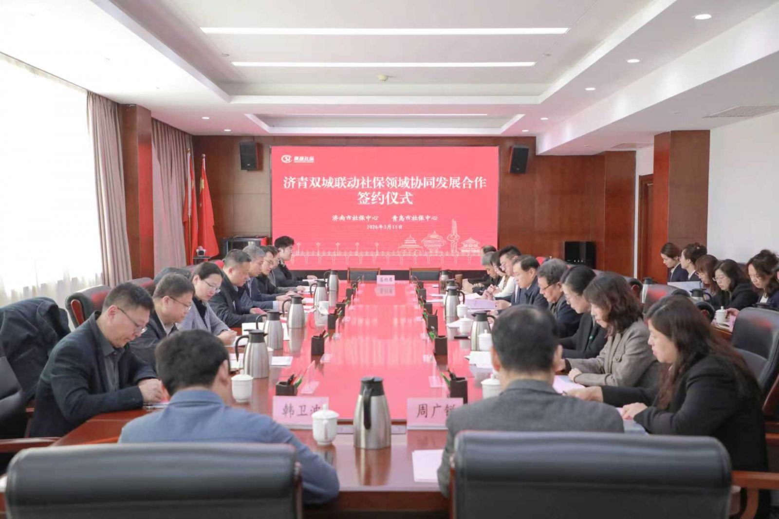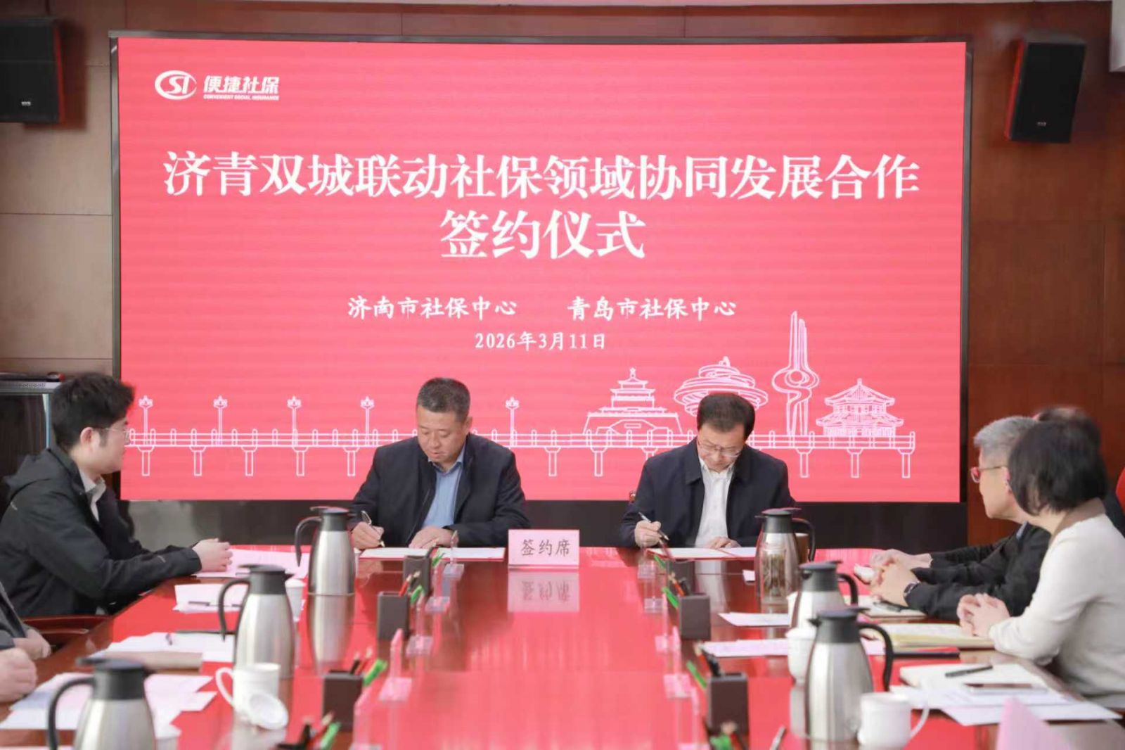 3月11日,济南、青岛两市社保部门共同签署《济青双城联动社保领域协同发展合作协议》,标志着山东两大中心城市在社保领域迈入制度化、常态化协同发展新阶段。协议聚焦群众办事难点堵点问题,围绕数据共享共用、服务协同联动、社银合作共建、经验交流互鉴等四方面合作内容和20余项高频服务事项,打造区域协同、便民高效、安全规范的社保服务新模式,推动社保服务由“单城可办”向“双城通办”跨越,为全省社保服务一体化发展探索新范式。