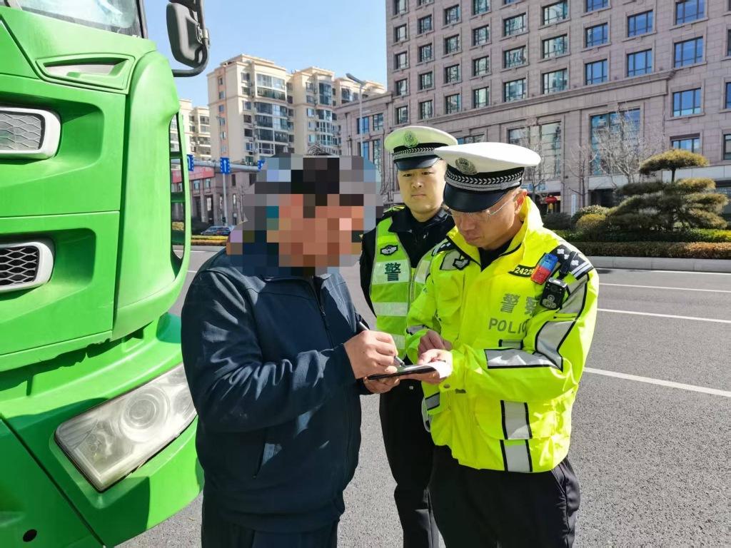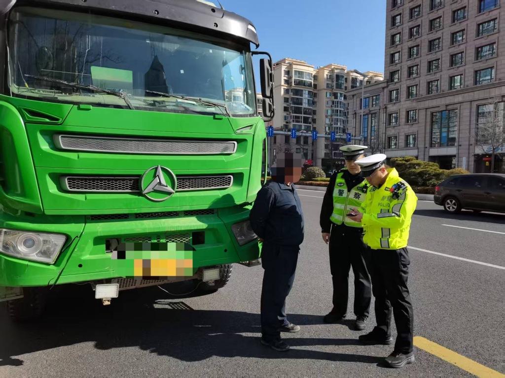 为全力筑牢道路交通安全防线,有效预防和减少道路交通事故,3月7日,青岛市公安局市南分局交管大队五中队在福州南路开展路面执勤执法,成功查处一起重型货车非法改装、严重超载违法行为,及时消除道路交通安全隐患。