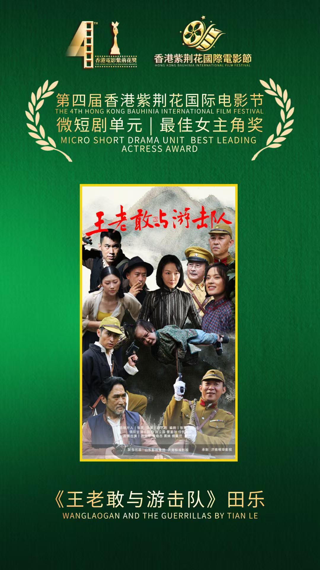 凭借过硬的制作水准与深刻的主题表达,《王老敢与游击队》不仅收获了市场热度,更赢得了行业认可:在第四届香港紫荆花国际电影节和亚洲艺术电影展等活动上,该剧一举拿下“优秀剧目”、“最佳制片人”、“最佳导演”等重磅奖项。演员田乐凭王老敢一角斩获“最佳女主角”称号,任忻儿则凭借剧中双重人物性格演绎和重场情感戏表现,获得亚洲艺术电影展最佳女配角殊荣。演员张帅、訾富尔、侯培杰、杨丰泽等也喜获最佳男主角或最佳演员提名。同时,作为鲁剧重点短剧项目的《王老敢与游击队》,也成功入选国家广电总局春节档优秀剧目特别推介。