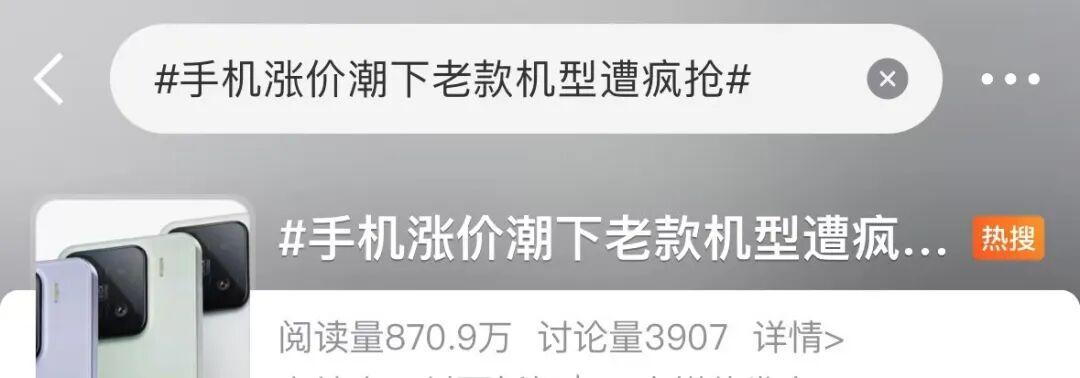 此前,已有多个“手机涨价”词条引发关注。