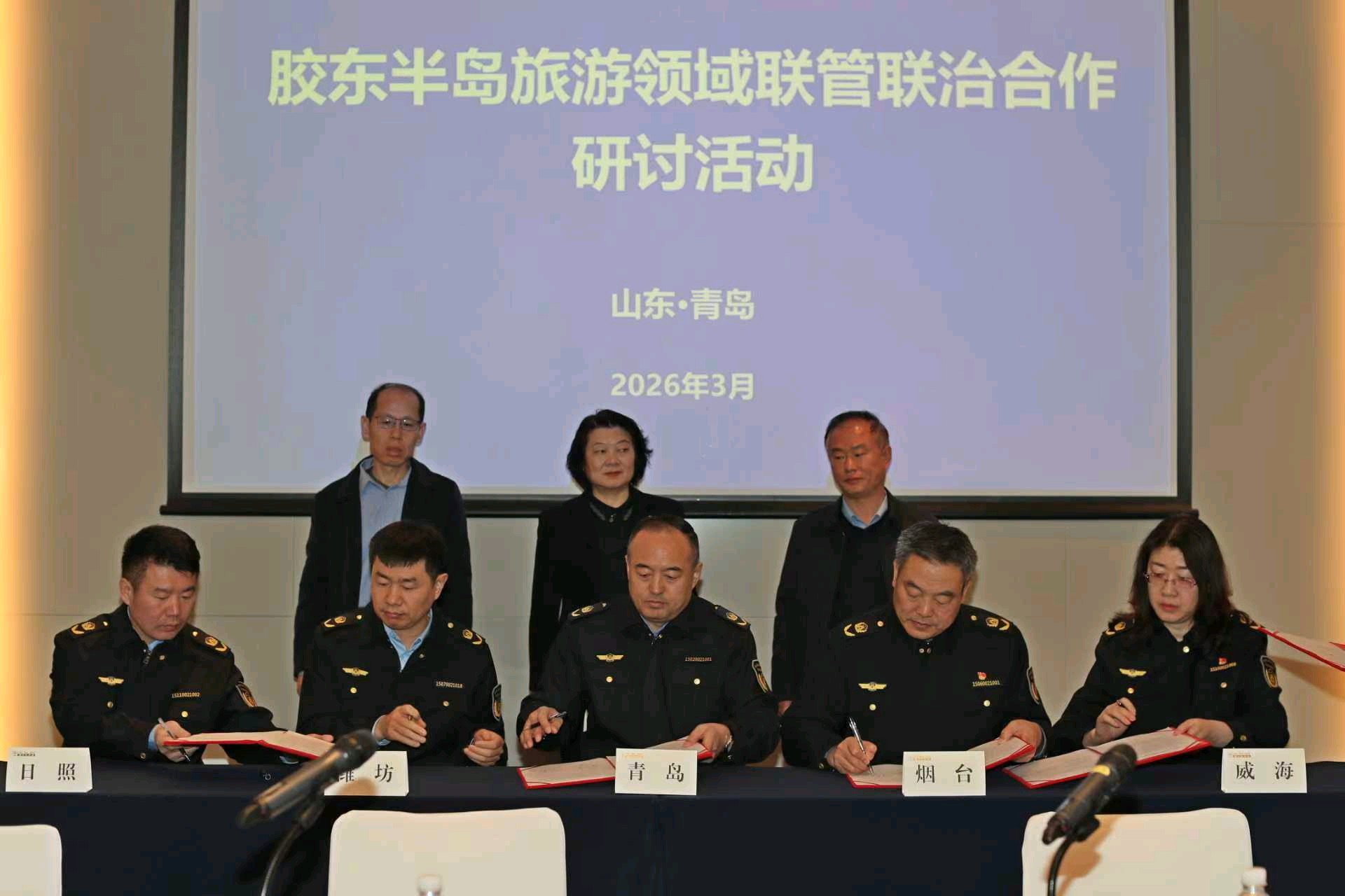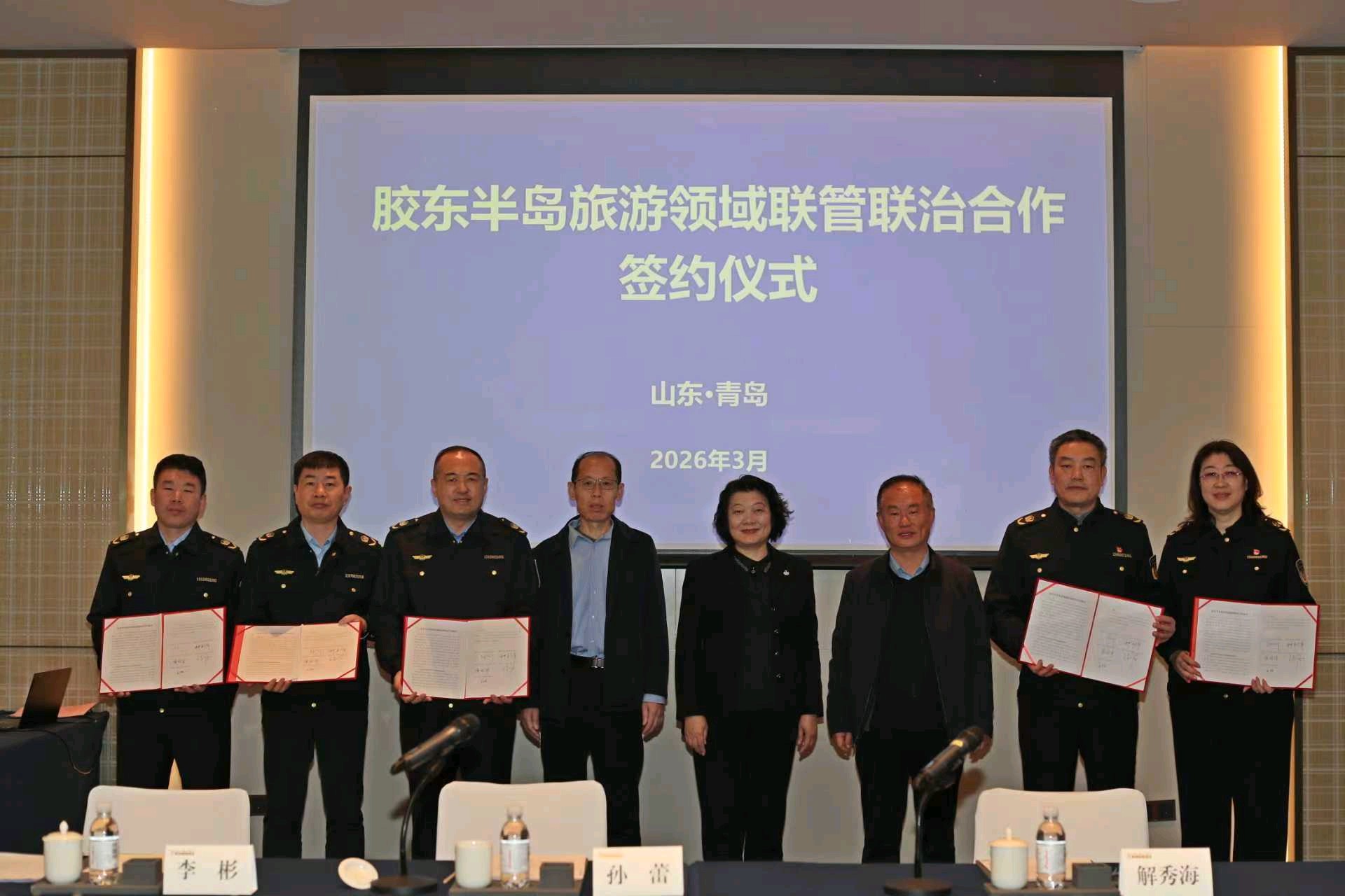 3月13日,半岛旅游领域联治联管合作签约仪式在青岛举行。青岛、烟台、潍坊、威海、日照五市文化市场综合执法部门共同签署合作协议,携手构建“联治联管、协同发展”的一体化监管格局。省文化和旅游厅副厅长孙蕾出席签约仪式并讲话。