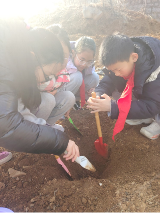 四年级的一位同学开心地说:“这是我第一次亲手种树,挖坑的时候虽然有点累,但看着小树苗被我们栽进土里,挂上我写的心愿卡,特别有成就感!十岁的成长礼能和植树节一起过,太有意义了,我会一直记得这棵和我一起成长的小树。”