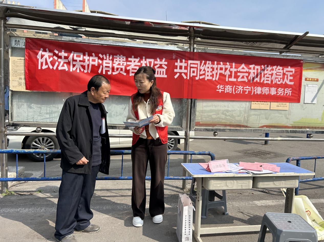 3月13日,济宁高新区柳行街道崇文社区联合华商律师事务所开展“守护消费安全 共建诚信家园”主题宣传活动,将维权服务精准送至群众家门口。