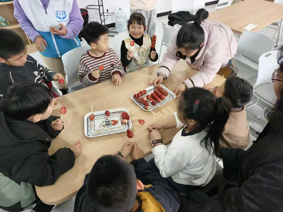 在传统文化体验课中,孩子们亲手制作糖葫芦,学习熬糖技巧,聆听南宋起源故事;剪窗花、做糖画、包汤圆等民俗活动贯穿寒假。科学课堂上,哈尔滨工业大学(威海)的大学生志愿者带来机器人、智能小车、ROV模型展示,让孩子们近距离感受科技魅力;北交大威海校区大学生志愿者带来的“永怀薪火 铸魂山河”主题宣讲则用生动演绎点燃孩子对科学研究的热情。