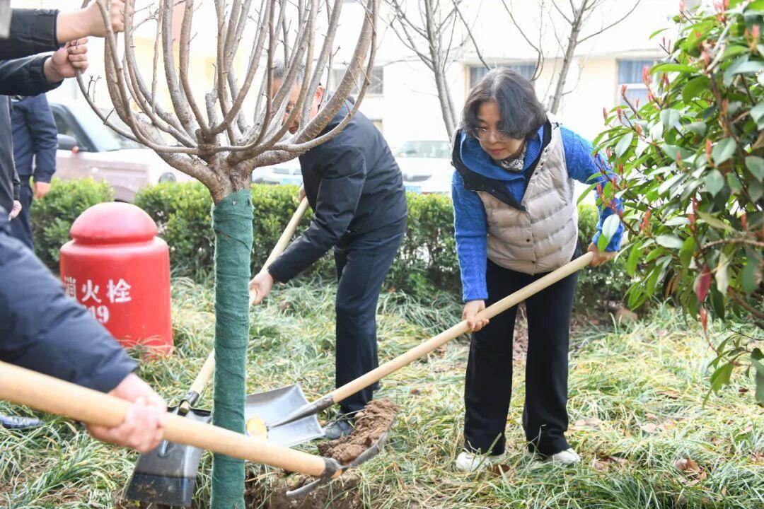 活动现场,医院党委副书记、院长王兴玲,副院长崔刚带头为新树苗浇水、培土,参与其中的同事们默契配合,用双手为院区增添勃勃生机。