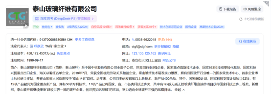 泰山玻璃纤维有限公司注册于1999年注册资本458,172.4537万元,由中材科技股份有限公司全资持股,从事玻璃纤维及制品制造;高性能纤维及复合材料制造;玻璃纤维及制品销售;高性能纤维及复合材料销售;化工产品销售(不含许可类化工产品)等。