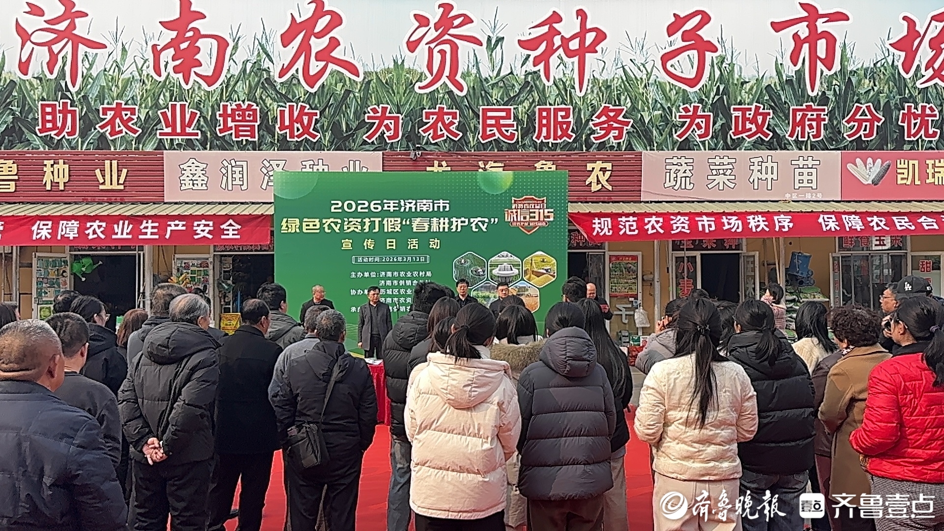 为强化春季农资监管,规范市场秩序,引导农民群众合理购买、科学使用农资产品,切实维护农民合法权益,掀起绿色农资保春耕、打假护农保安全的高潮,保障春耕生产顺利进行,3月13日,2026年济南市绿色农资打假暨“春耕护农”活动在济南农资种子市场正式启动。此次活动由济南市农业农村局、济南市供销合作社联合主办,济南供销农服集团公司、济南农资种子市场承办,历城区农业农村局、济南市农资协会协办。