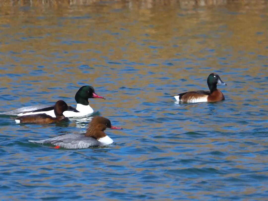 近日,在位于威海南海新区的五垒岛湾国家湿地公园,摄影爱好者拍摄到国家一级保护动物、世界极危物种青头潜鸭和国家二级保护动物斑头秋沙鸭。这是南海新区首次发现这两种鸟。