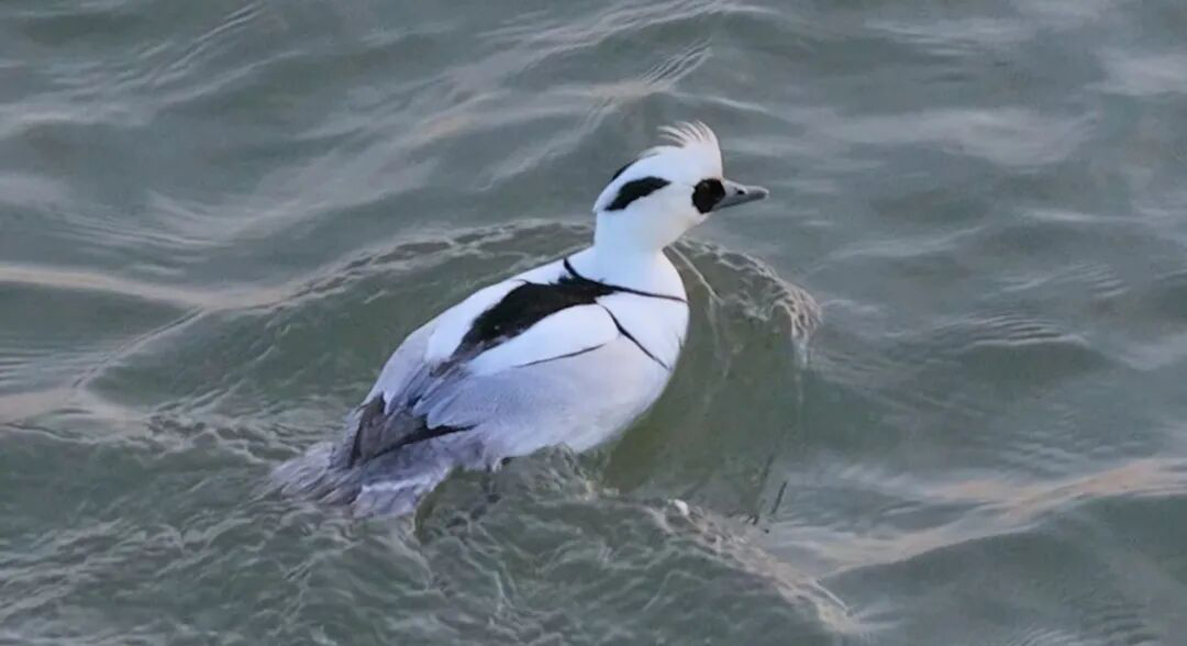 斑头秋沙鸭因雄鸟羽毛黑白分明、眼部黑斑酷似熊猫,被形象地称为“熊猫鸭”;雌鸟头颈呈栗褐色、体羽偏灰褐色,雌雄异色特征鲜明。它们对水质清洁度、食物丰度和栖息隐蔽性要求极高,是区域生态环境健康与否的重要指示物种。