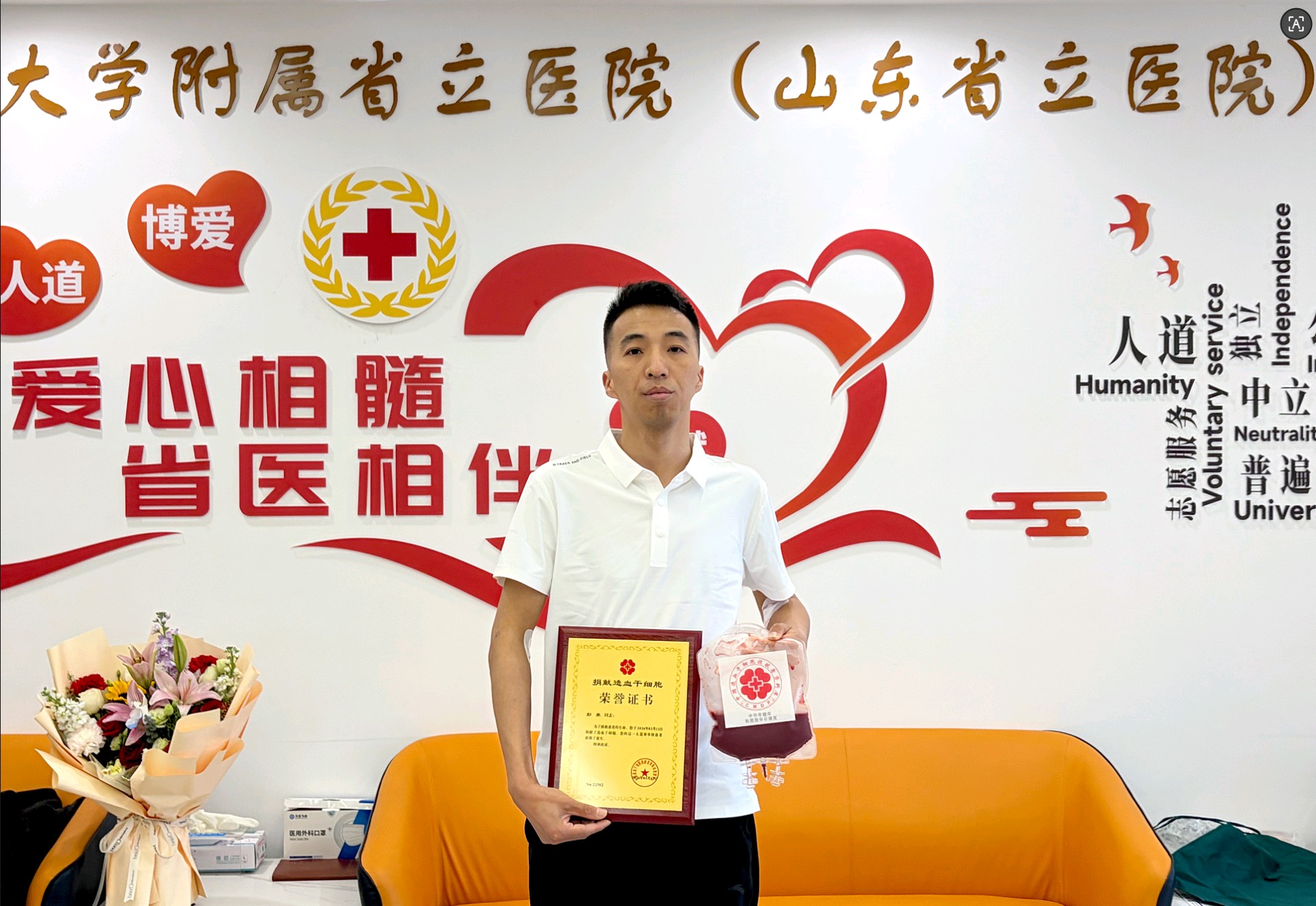 今年春节刚过,彭泉根据山东省红十字会要求,完成捐献前最后一次体检,各项指标均正常。3月12日上午,在山东省立医院的采集室里,彭泉躺在病床上,伴随着血细胞分离机的平稳运转,珍贵的造血干细胞混悬液被缓缓采集。整个采集过程耗时近 5个小时,这是一场与时间赛跑的生命接力,更是一次温暖人心的爱心传递。