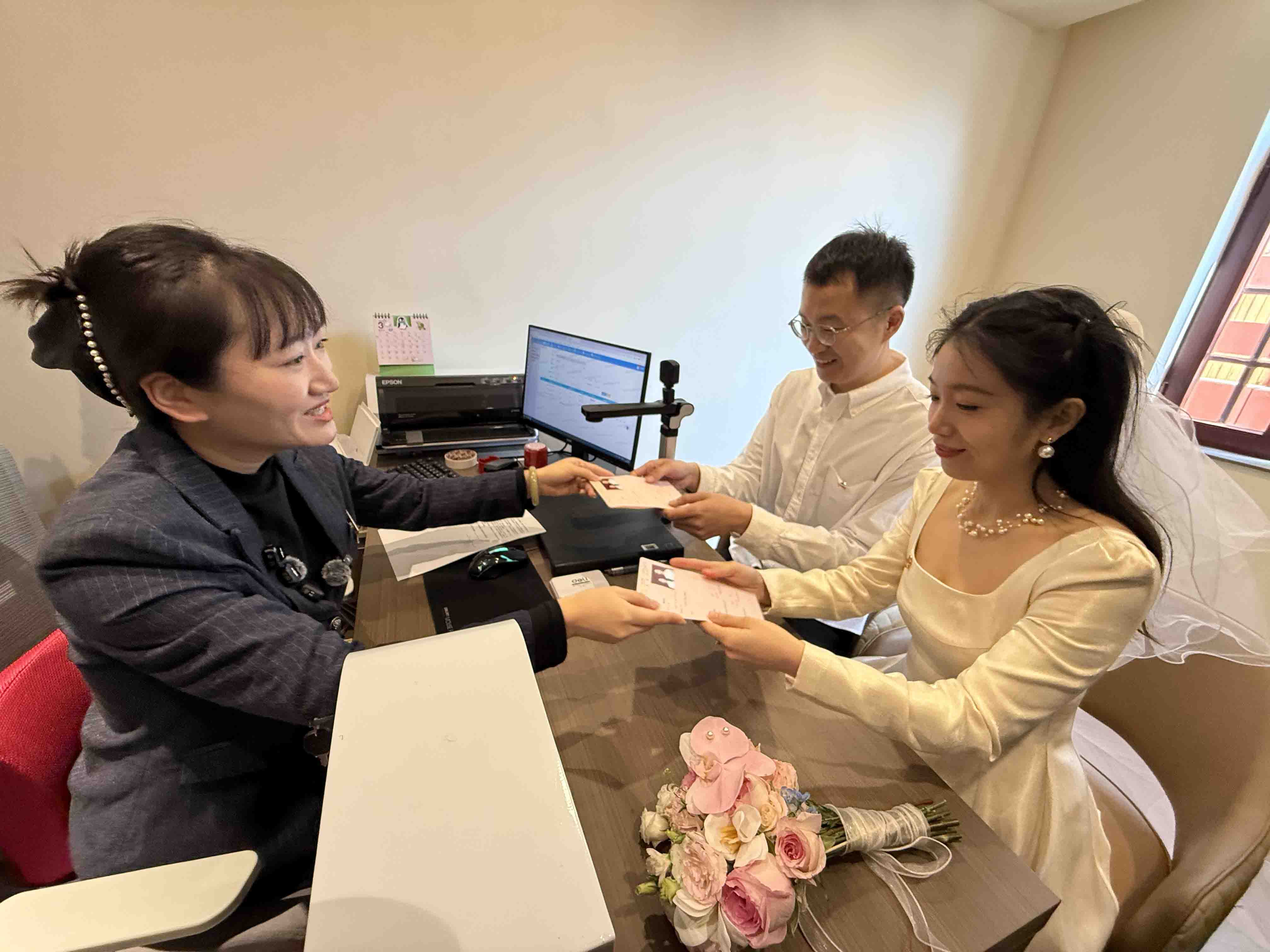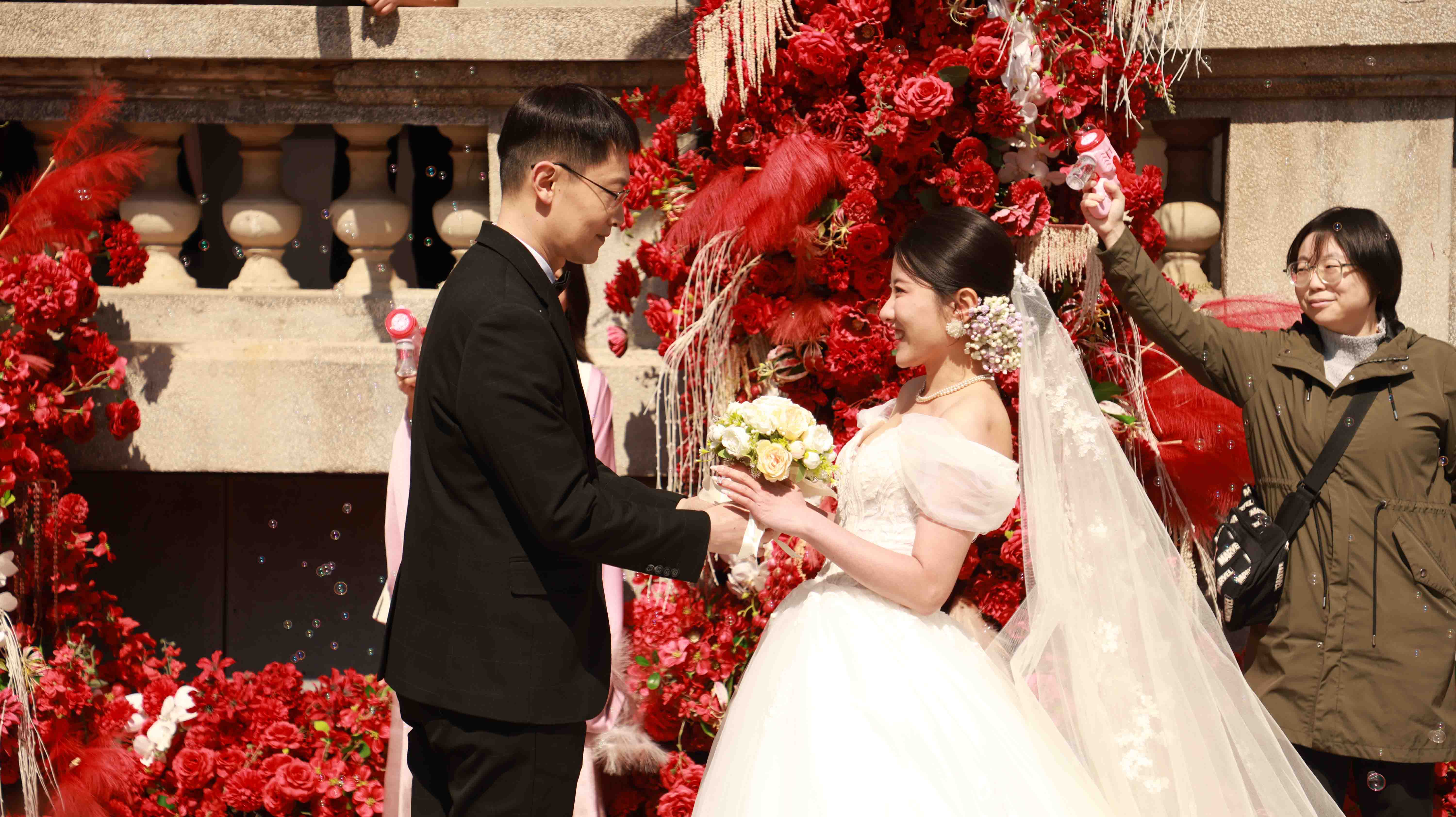 与此同时,来自山西洪洞、河南洛阳、陕西安康、吉林敦化等地的10对新人在安娜别墅网红婚姻登记点顺利领证,在复古建筑与浪漫打卡景观中定格幸福瞬间,形成“一边办婚礼、一边领红证”的甜蜜盛景,成为市南区甜蜜经济最直观的写照。