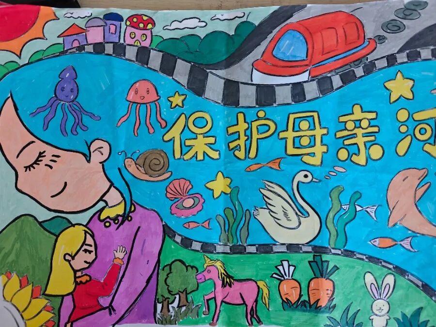 活动结束后,孩子们以“保护黄河”为主题精心创作手抄报。小雨轩那张画上,按了一个红手印。她说:“老师说过,手印摁下去就不能反悔。”