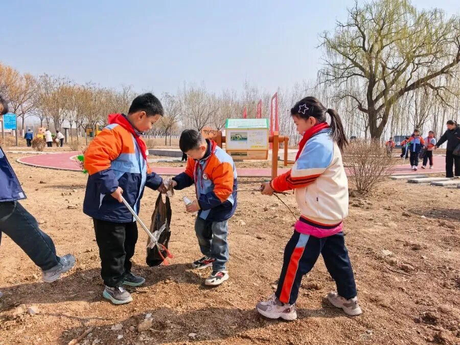 “我宣誓——保护母亲河,从我做起!”庄严的宣誓仪式后,“黄河小卫士”们戴上手套,拿起垃圾夹,拎着分类垃圾袋,迅速投入到沿黄垃圾清理行动中。