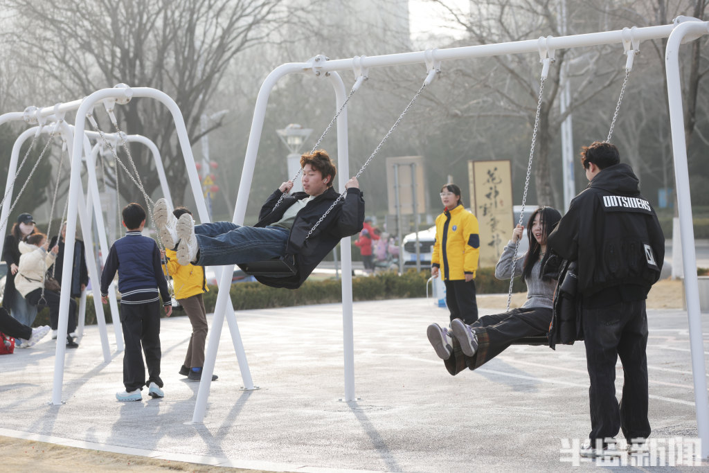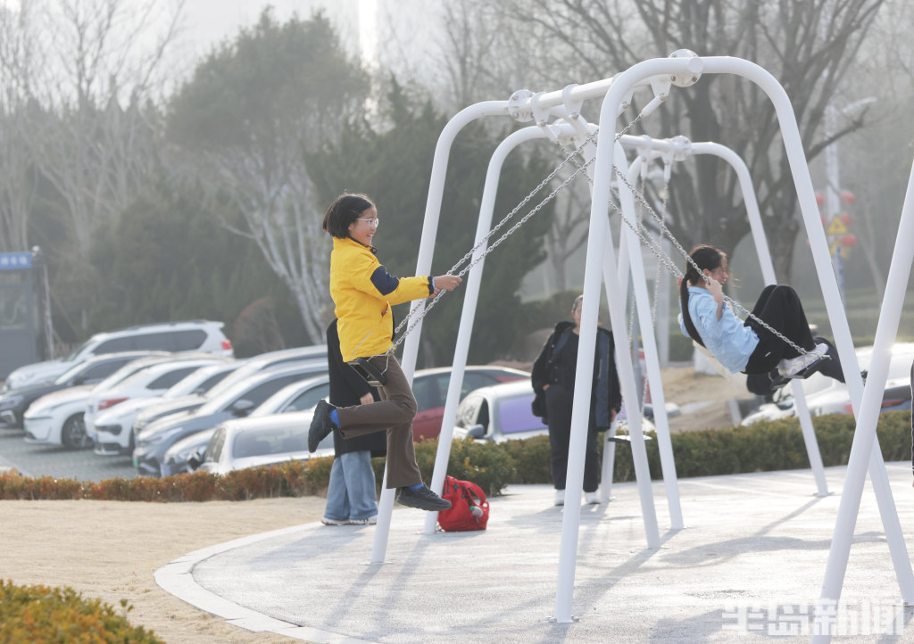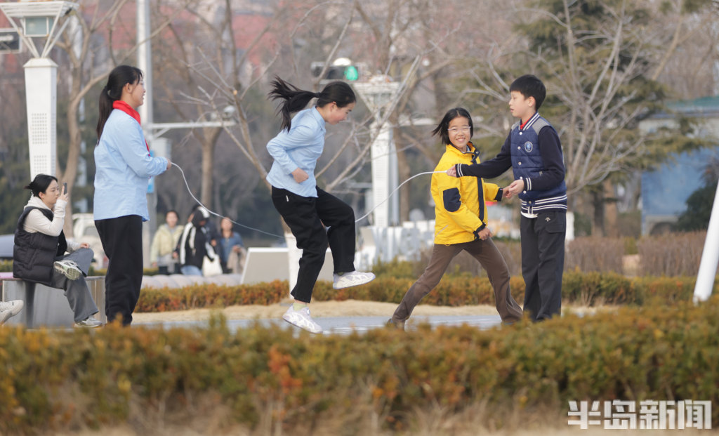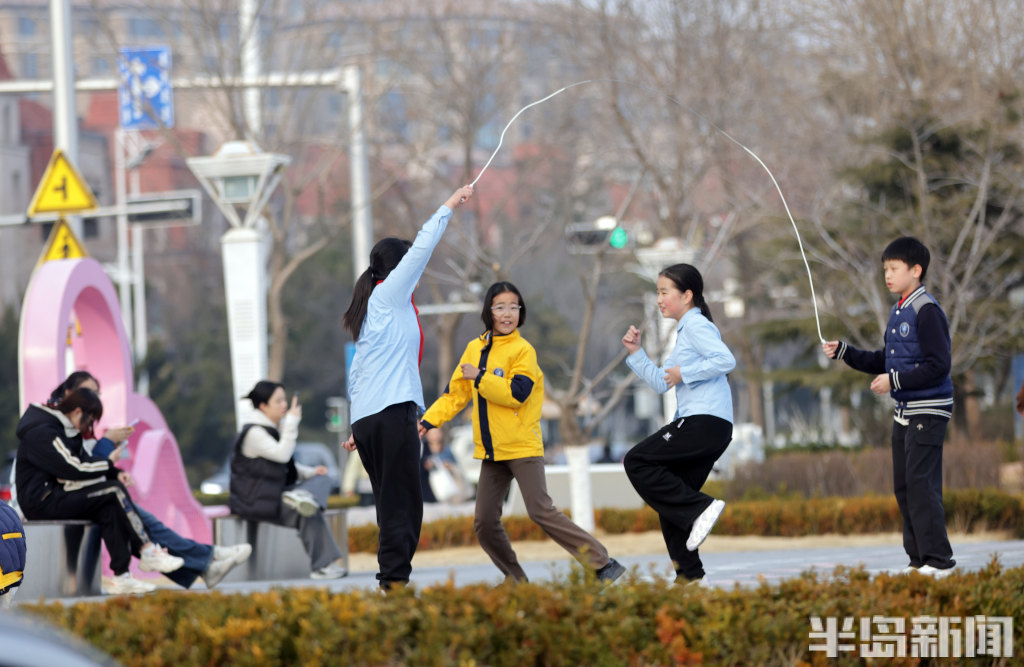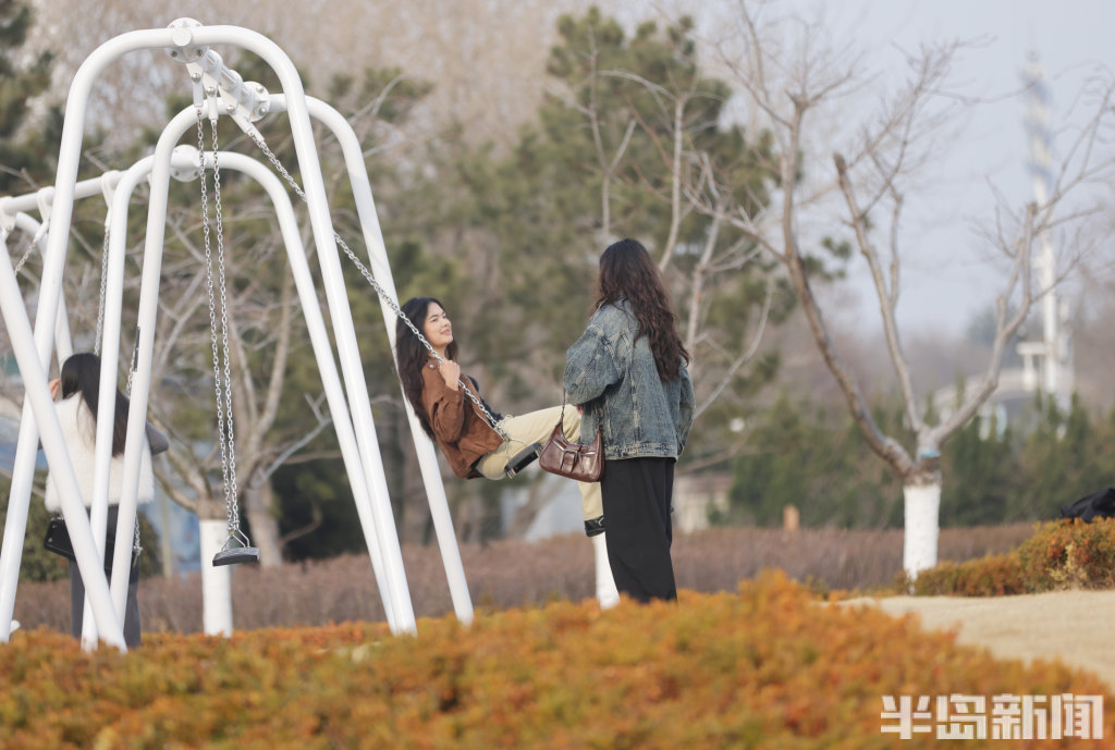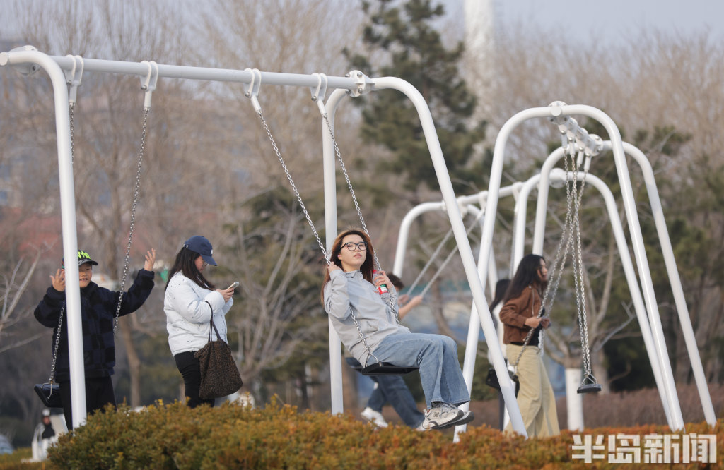 3月13日下午,青岛小麦岛公园东侧暖意融融,许多年轻人到此散步。不少刚放学的小学生在这里跳绳嬉戏,一旁的年轻人悠闲荡着秋千,感受曾经童年时光,尽享海边惬意时光。公园紧邻海岸线,孩子们在玩耍嬉戏的同时,还能远眺蔚蓝海景放松眼睛的疲劳,自在又舒心。(半岛全媒体记者何毅)