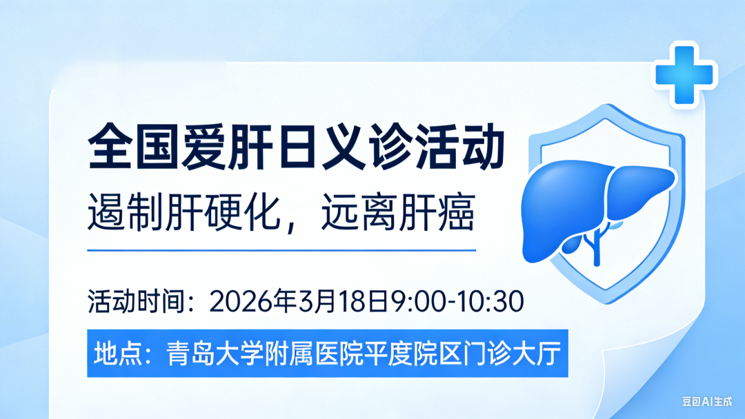 据了解,青岛大学附属医院平度院区感染性疾病科、检验科、健康管理中心、肝胆胰外科联合,将于3月18日上午 09:00 —— 10:30进行“遏制肝硬化,远离肝癌——早筛早治,守护肝脏健康”,全国爱肝日公益义诊。届时,肝病科专家,肝胆外科专家现场坐诊,为您提供肝脏健康咨询,解答关于病毒性肝炎、脂肪肝、肝硬化、肝癌、胰十二指肠病变、胆道疾病诊疗等常见肝胆疾病的预防、诊断与治疗问题。