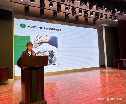 活动现场氛围热烈,全体师生有序就座。李律师结合自身经验和专业法律素养,用通俗语言、鲜活案例,让法治知识变得易懂易记。