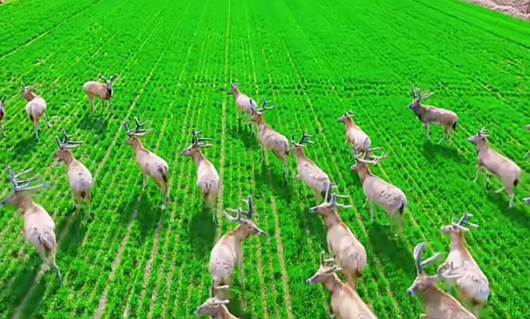 麋鹿夜间成群结队啃食踩踏作物,农户不堪其扰后用无人机喇叭驱离