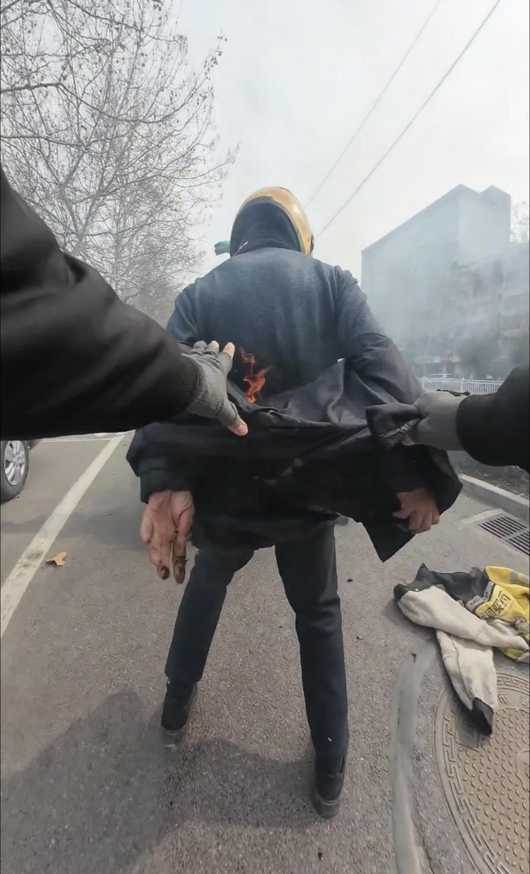 路遇“火人”,淄博大哥徒手撕掉“火衣”救人
