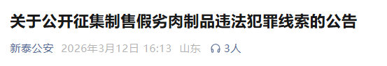 公开征集制售假劣肉制品违法犯罪线索,泰安一地3部门发布公告