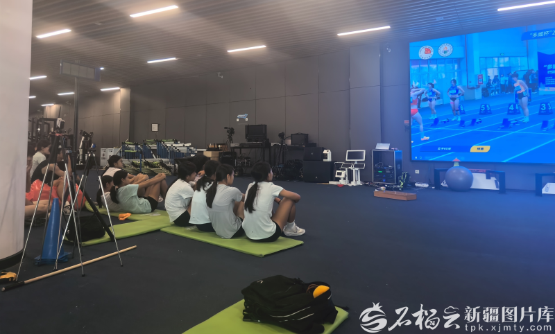 在昌吉州第一中学室内田径馆,队员们集体观看李艳杰的比赛。韩超摄