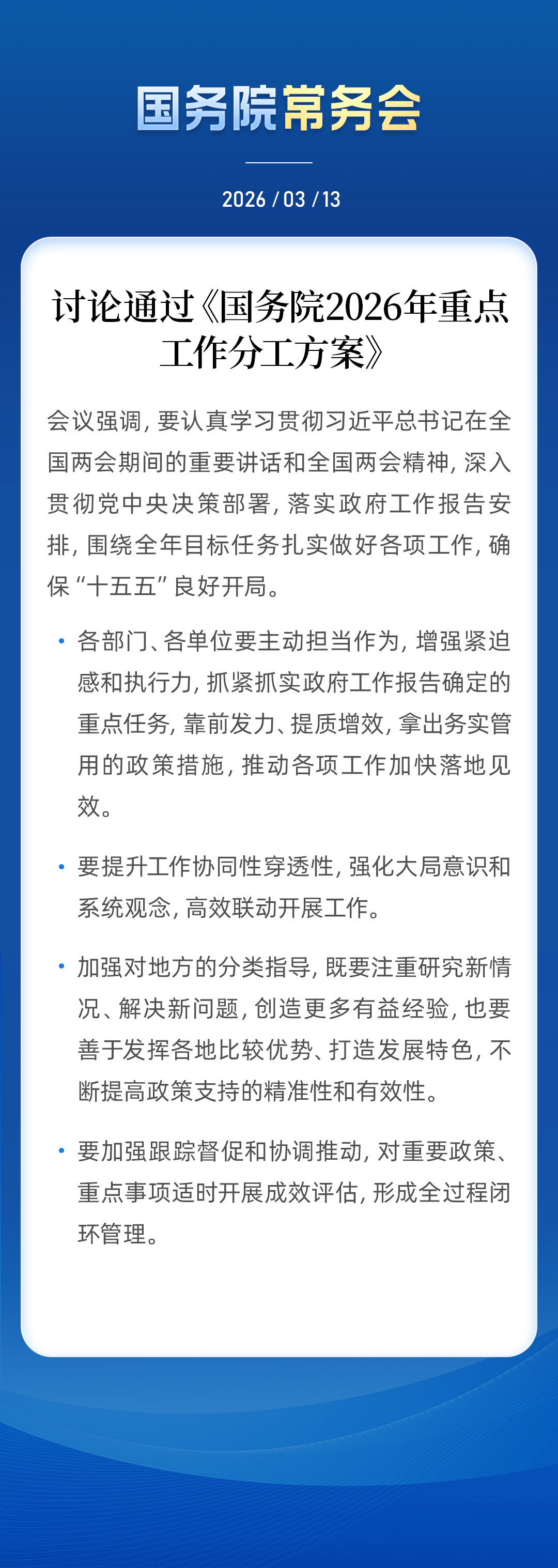 国务院常务会讨论通过《国务院2026年重点工作分工方案》