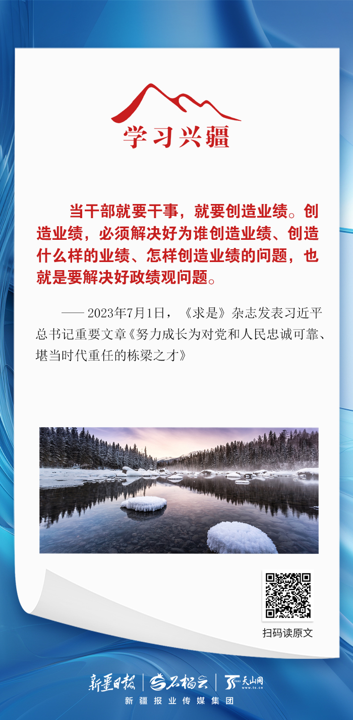 当干部就要干事,就要创造业绩。创造业绩,必须解决好为谁创造业绩、创造什么样的业绩、怎样创造业绩的问题,也就是要解决好政绩观问题。——2023年7月1日,《求是》杂志发表习近平总书记重要文章《努力成长为对党和人民忠诚可靠、堪当时代重任的栋梁之才》