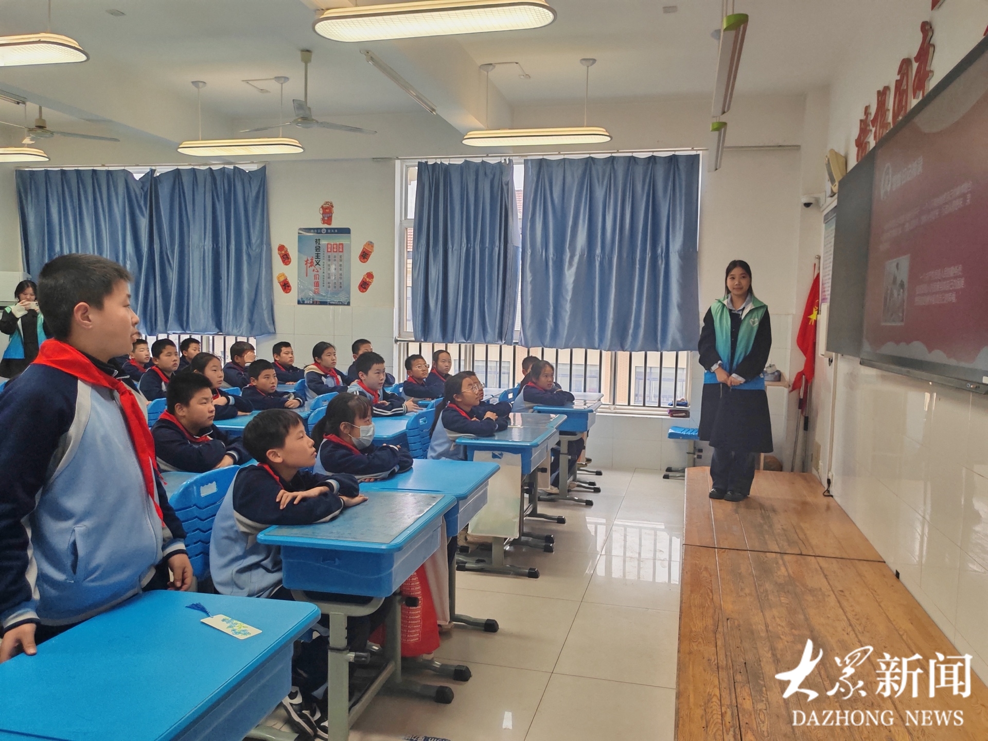 在高新区第二小学五年级九班活动现场,大学生志愿者通过PPT讲解、雷锋事迹视频播放、经典故事分享等形式,带领孩子们感受雷锋的榜样力量。从“雷锋出差一千里,好事做了一火车”的暖心佳话,到“螺丝钉精神”的深刻内涵,志愿者用生动的语言、鲜活的案例,引导大家感悟雷锋同志爱岗敬业、无私奉献、助人为乐的崇高品格,让雷锋精神的种子在孩子们心中悄然生根。
