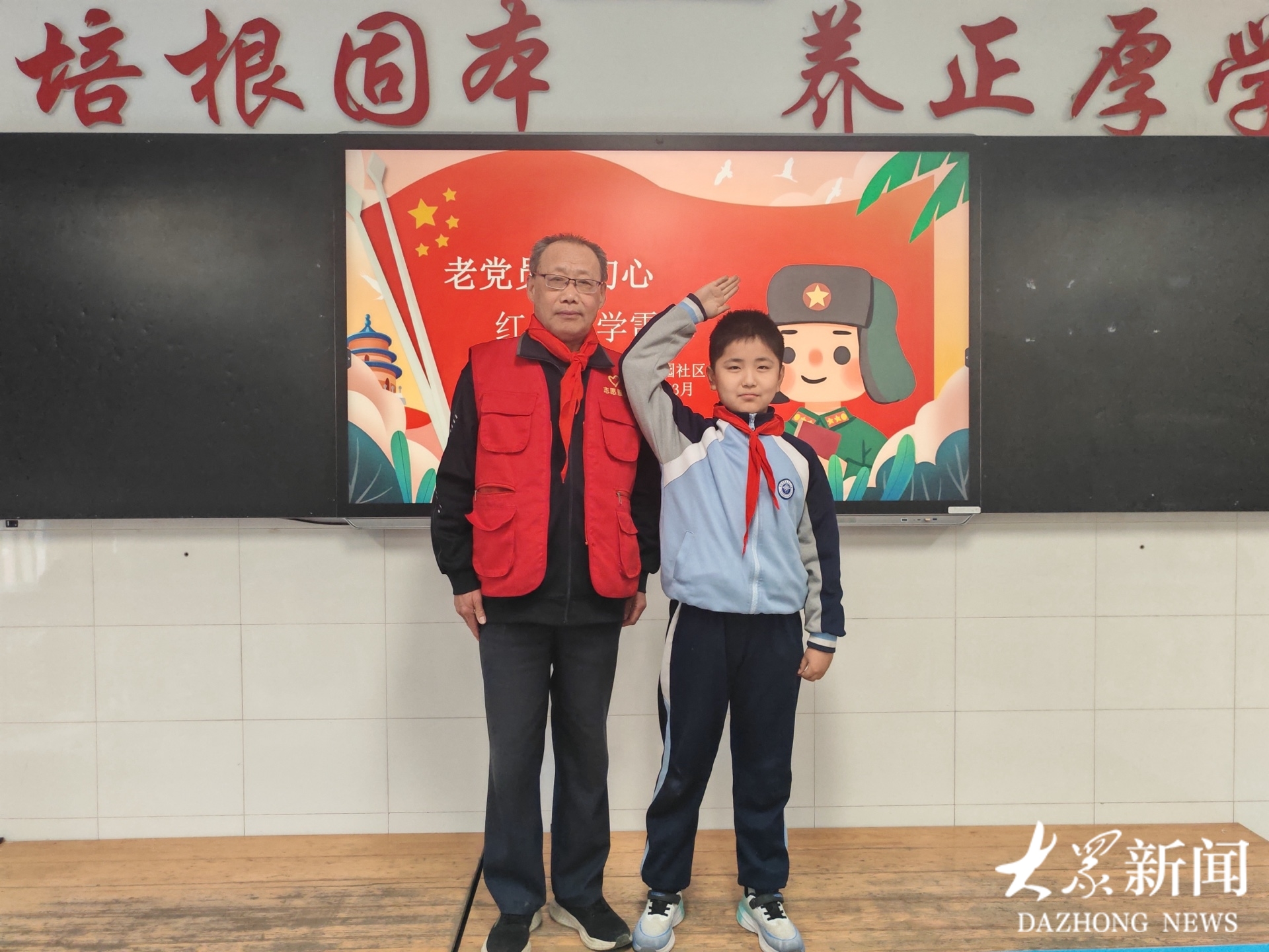 随后,辖区老党员王士成走进活动现场,结合自身经历与人生感悟,为孩子们讲述退休后践行雷锋精神的志愿服务往事。“我在社区参与志愿服务,最大的体会就是,雷锋精神从来没有过时。它是邻里互助的热忱,是爱岗敬业的坚守,是无私奉献的担当。”王士成说,今天带着孩子们一起学雷锋,就是想让这份精神代代传下去,让孩子们从小懂得感恩、懂得付出。分享过程中,少先队员为老党员佩戴红领巾,老少之间的温情互动,让现场暖意融融。