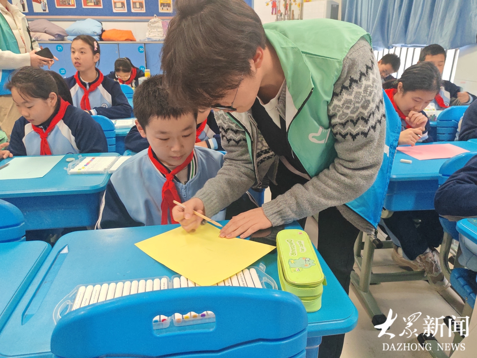活动最后,大学生志愿者与小学生共同开展“雷锋精神伴我行”雷锋剪纸活动。大家协同合作,剪出雷锋头像、雷锋语录等作品。