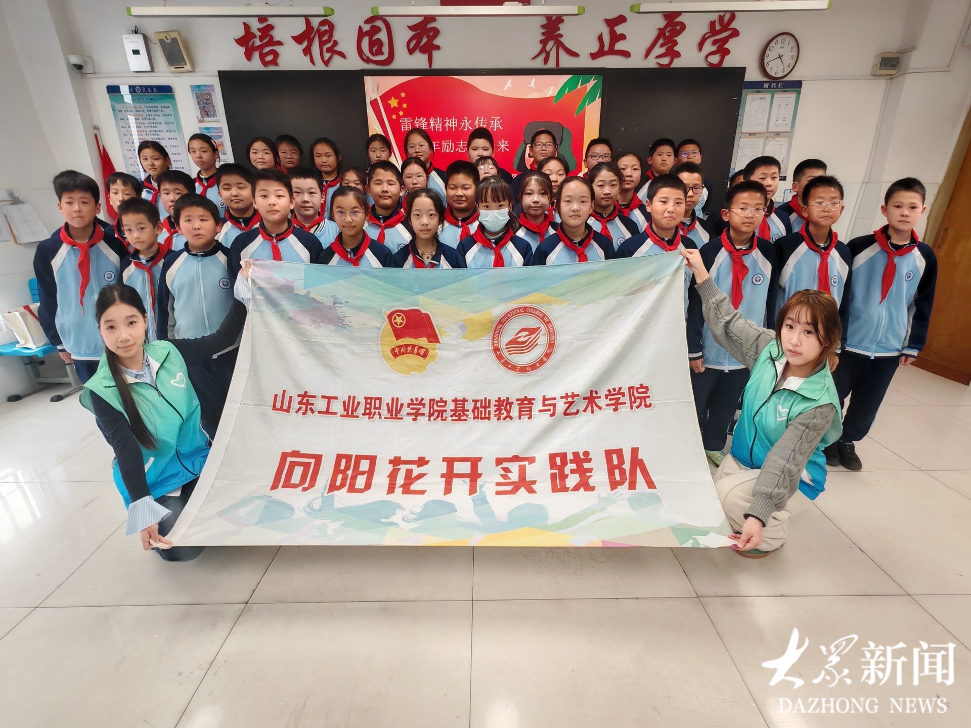 “孩子们,雷锋精神不是一句口号,而是藏在弯腰捡起垃圾的指尖,藏在主动帮助同学的善意里,藏在每一件用心做好的小事中。”山东工业职业学院基础教育与艺术学院大学生志愿者结合自身志愿服务经历,向孩子们分享践行雷锋精神的感悟,鼓励大家从小事做起,争做追“锋”少年。