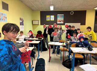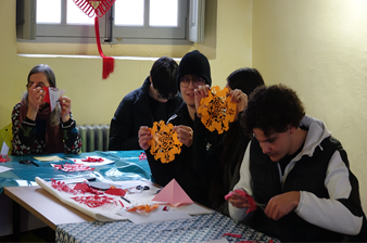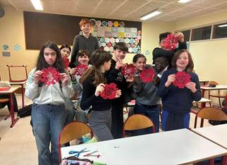 法国雷恩市 Le Landry 中学课堂马年团花剪纸活动