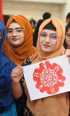 与此同时,为了让春节期间留在中国的国际学生感受到中国年俗的魅力,团队特邀泉城非遗人在校园内举办了专场体验活动。来自印度尼西亚、巴基斯坦、孟加拉、俄罗斯、巴布亚新几内亚的国际学生齐聚一堂,在一折一剪中近距离触摸中国民俗文化的温度,感受马年新春的喜庆氛围。