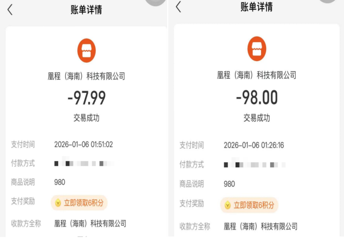 记者通过查询充值记录发现,在名为“磁场派对”App充值后,收款方为“凰程(海南)科技有限公司”。