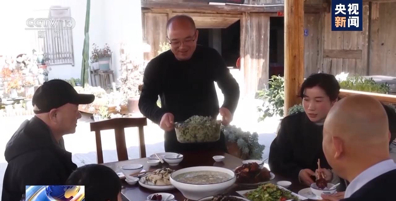 游客 杨丽:今天来园子里拍了很多很漂亮的照片,逛累了之后,我们在附近的农家乐,也吃到了非常正宗的春菜,一家人吃得很开心。