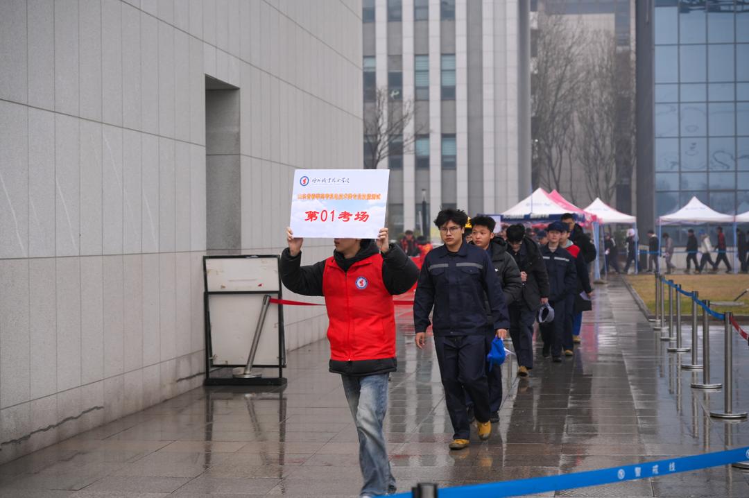 济宁市高新技工学校带队老师介绍:“我校27名同学参加考试,考前训练充分、学生信心十足。学校统一组织、统一住宿、考前辅导,考点各项准备非常到位,希望同学们考出好成绩。”