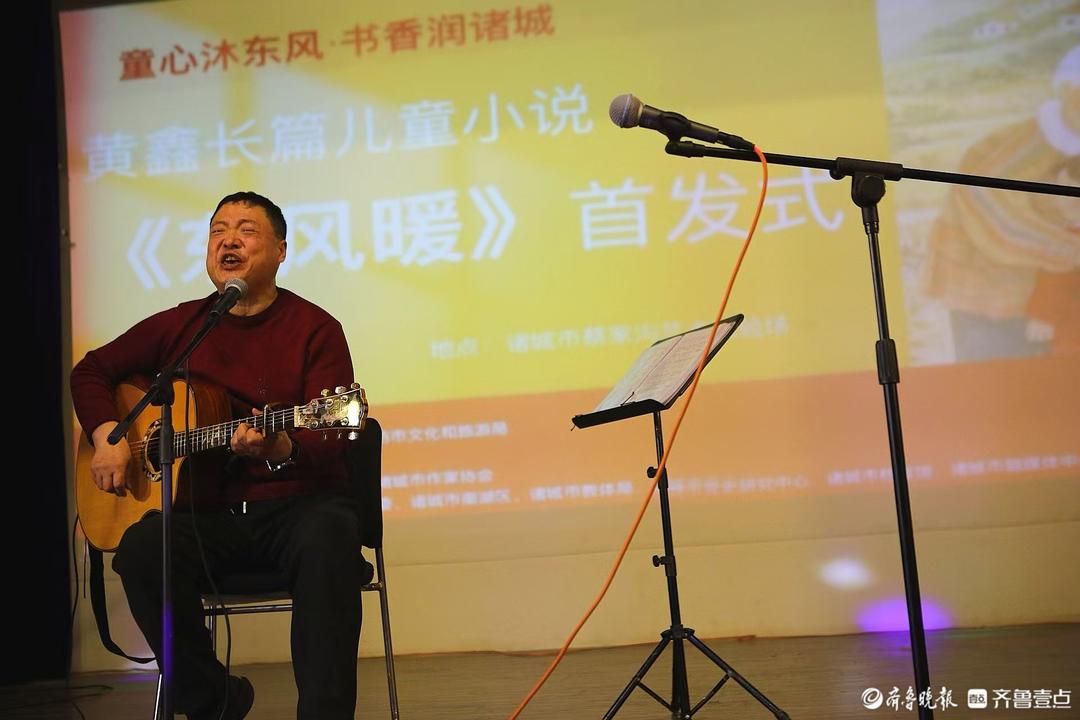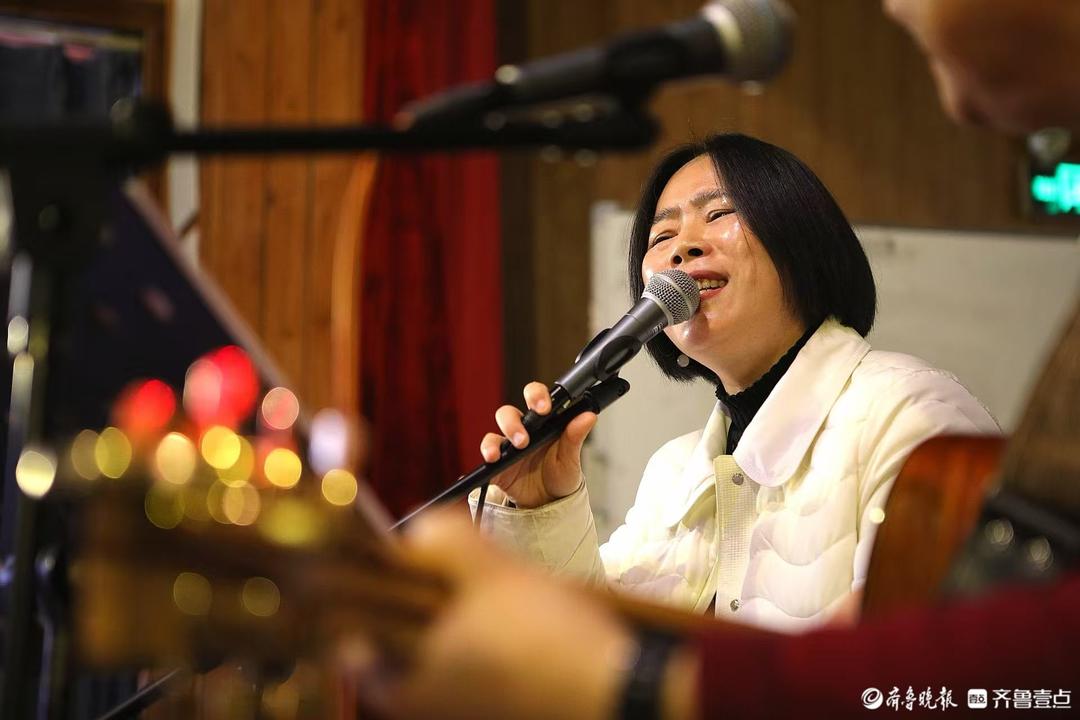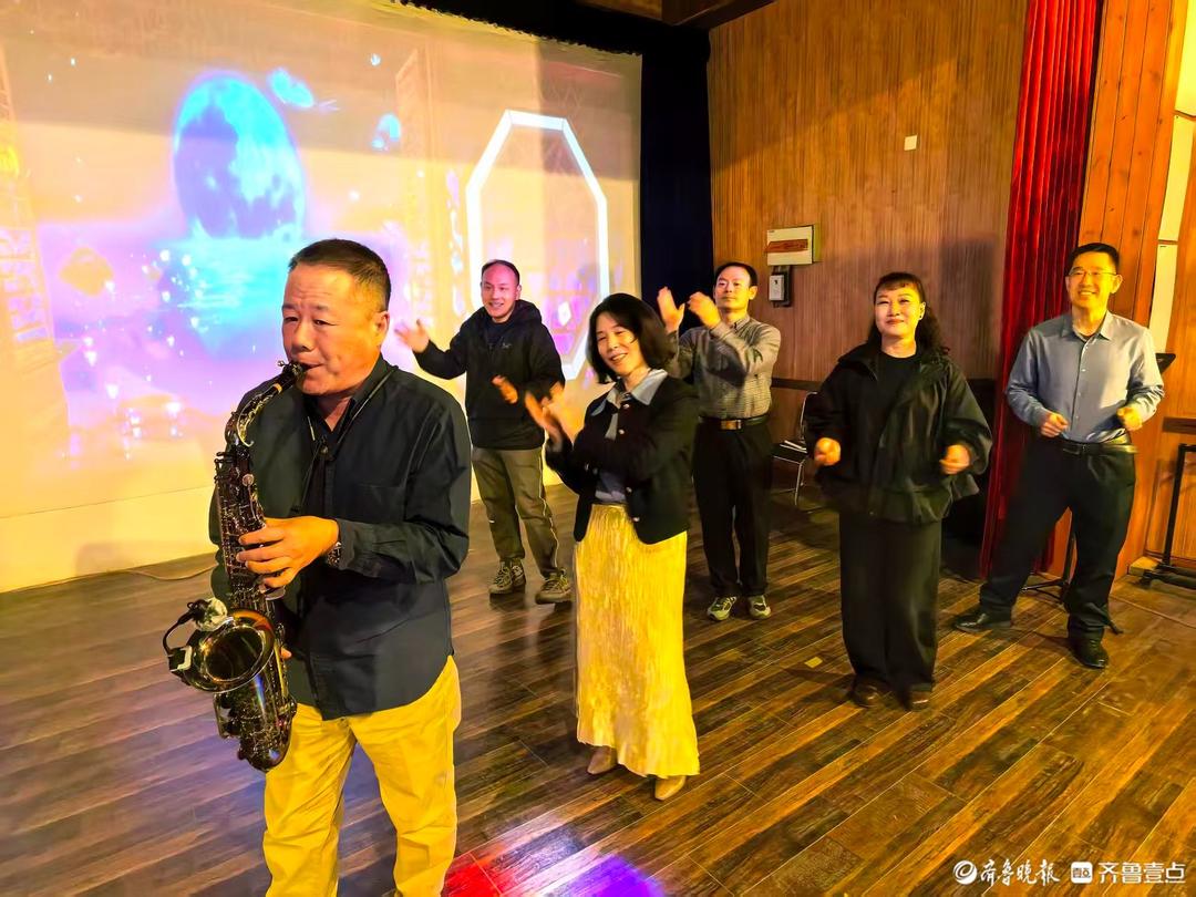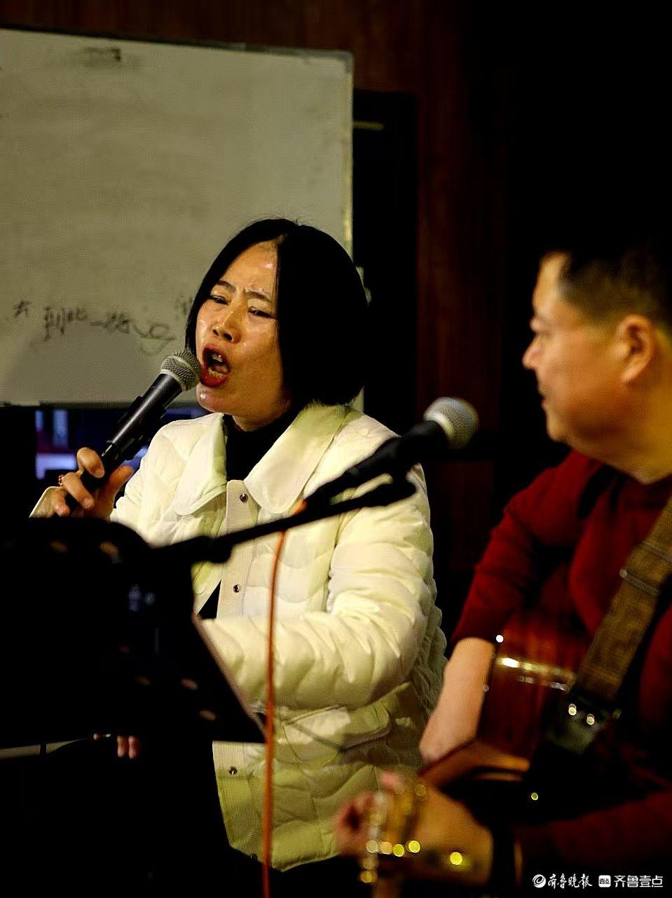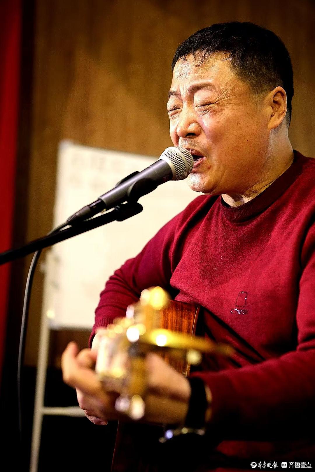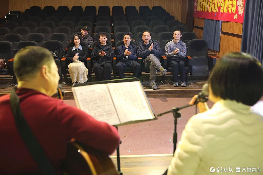 14日上午,诸城市老年大学音乐教师赵霞、吉他手王砚平携几位年过半百的文艺同仁来到蔡家沟村乡村剧院,展示才艺,抒发感情,回顾过去的好时光,吸引了不少游客前来观赏。这已成为他们每周六上午生活的“日常”。