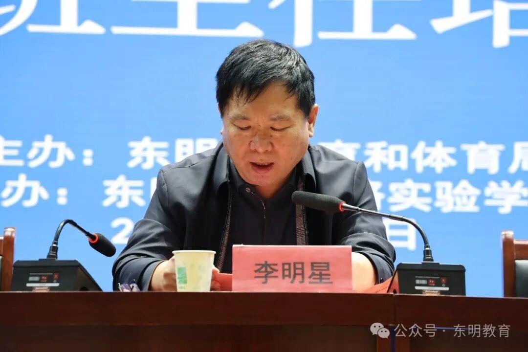 3月14日,东明县中小学骨干班主任培训会在县解放路实验学校举行。全国著名实战派班主任,河南省首届最美教师、教学名师、首届最具影响力智慧力班主任李迪受邀作专题报告。县政协党组成员、副主席,县教体局党组书记、局长李明星出席会议并讲话,县名班主任人选、部分名师工作室成员、县一中教师代表及县解放路实验学校全体教师等300余人参加培训。县教育事业发展中心副主任刘建方主持培训会。