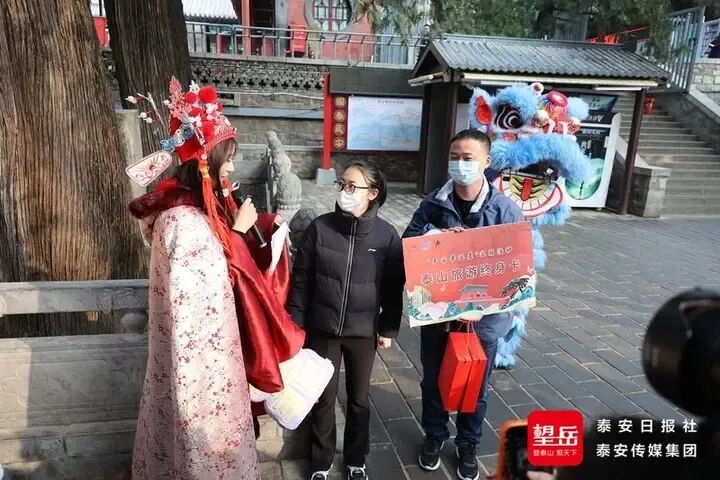 “泰山的主峰叫什么?”“泰山必打卡的石刻是什么?”“杜甫写泰山的诗叫什么?”……活动现场,妙趣横生的泰山诗词趣味问答,引得游客踊跃参与,也让他们感受到了泰山的热情与祝福。与此同时,泰山景区还贴心地为游客随机派发了限量红门靠山苑商户优惠券,让游客在尽享登山乐趣之余,体验到便捷与实惠的消费福利。
