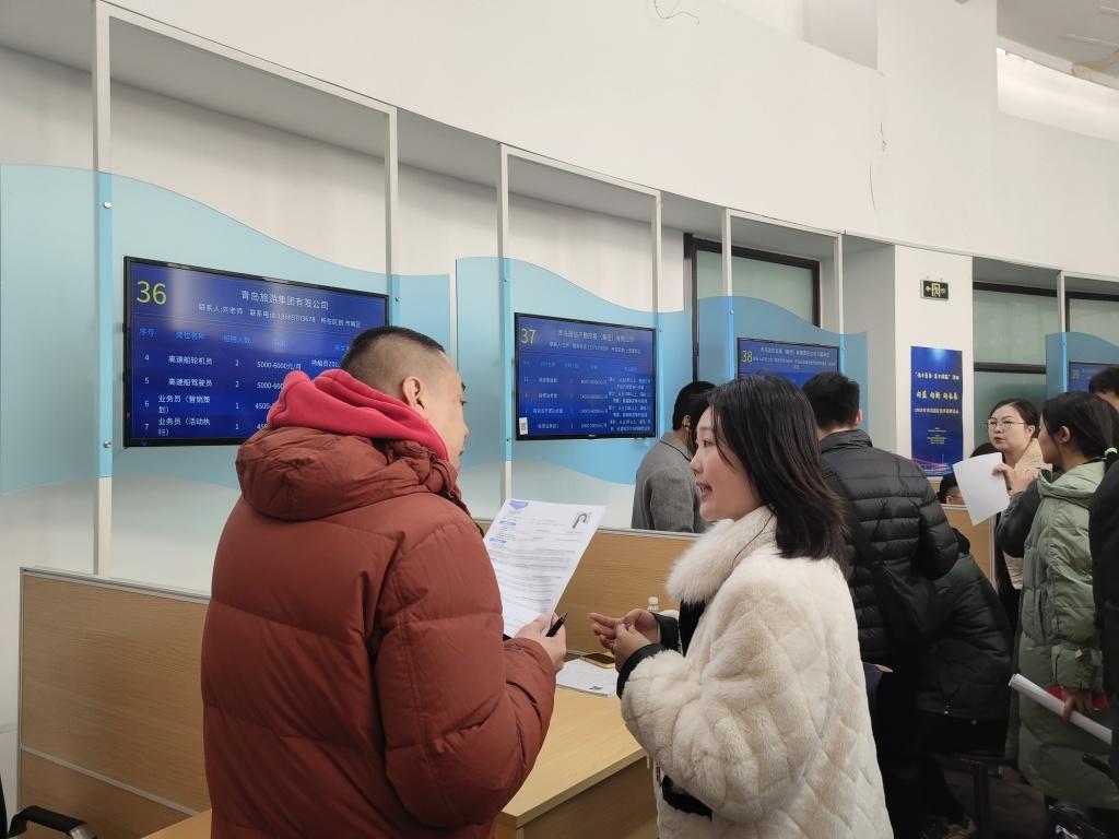 3月14日上午,“唯才青岛·惠才赋能”活动第23期暨“向蓝 向新 向未来”2026年青岛国企春季招聘活动在中国海洋人才市场(山东)举行。招聘会现场汇聚青岛啤酒集团、青岛国信集团、青岛华通集团等市属企业以及中国移动、中电科思仪等大型央企国企的1200多个岗位,涵盖海工装备、人工智能、数字金融等前沿赛道以及低空飞手、具身智能等新兴职业。招聘会吸引了2400余名高校毕业生及社会人才参加,在线岗位点击关注量超6.1万次,接收简历约3800份。