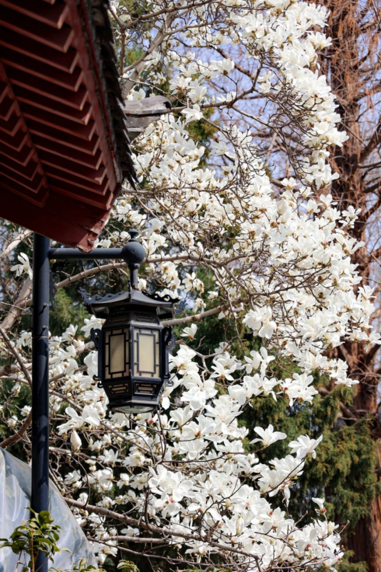 趵突泉公园还有近百株玉兰,望春玉兰、白玉兰、二乔玉兰、紫玉兰等品种齐聚,在泉水的温润滋养下,部分玉兰已悄然绽放。白雪楼前的白玉兰尤为出圈,温润的白色花瓣与古色古香的建筑相得益彰,宛如一幅幅绝美的画卷。