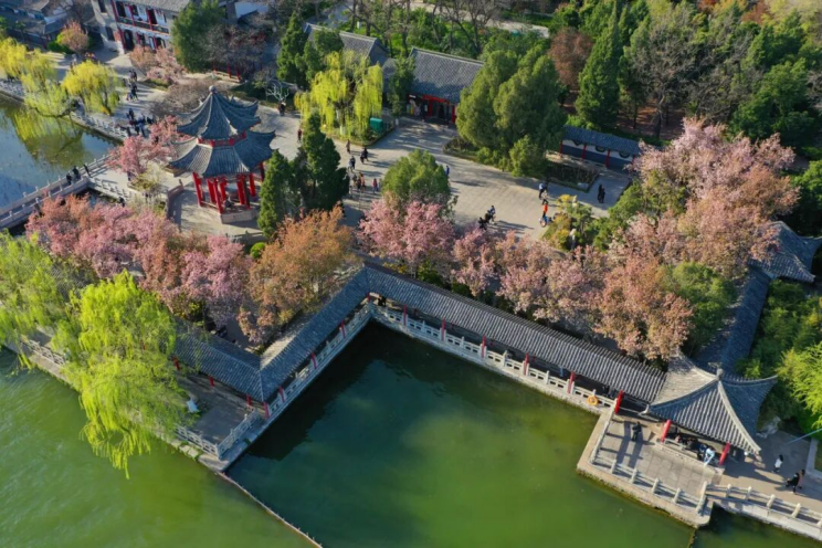 百花公园玉兰如云、碧桃似霞、美人梅含情、垂丝海棠低语,是不可错过的春日烂漫。