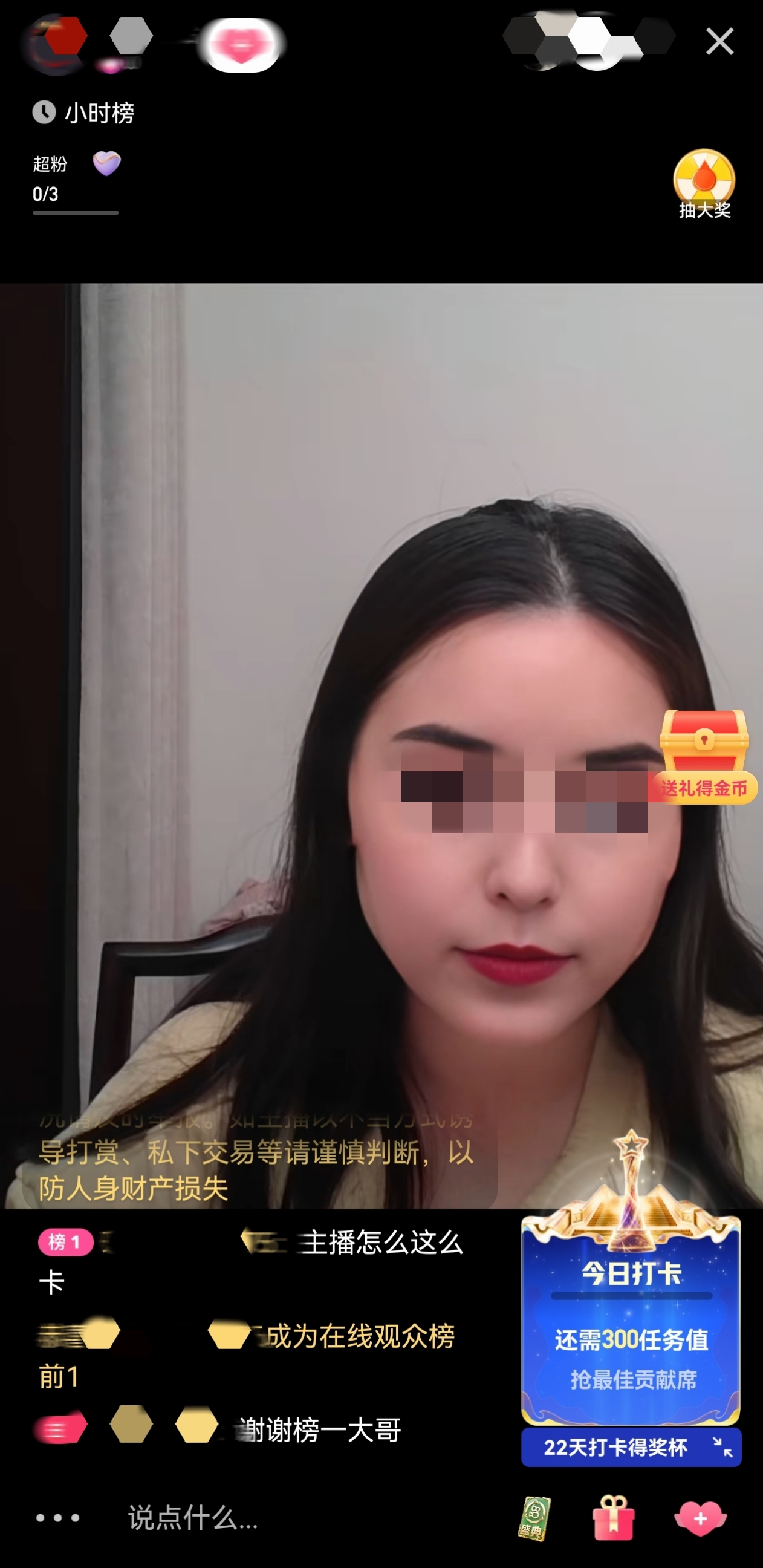 整场直播持续半小时,该平台未发送任何违规警告,也未触发内容审核机制。直播期间,实时在线观看人数稳定在10人左右;当记者在直播间口头上提及“换脸”相关字眼后,直播间进人数量明显上涨,半小时内累计观看人数突破1000人次,互动观众均未察觉主播并非真人原貌出镜。